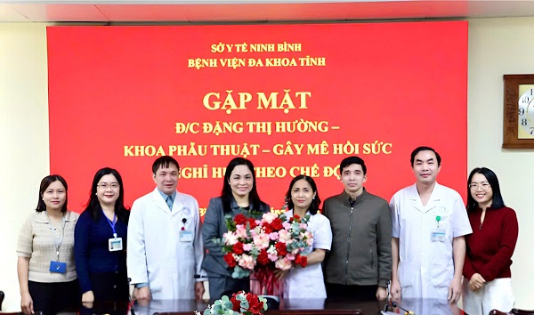 Ngày 27/11/2025, Bệnh viện Đa khoa tỉnh Ninh Bình trang trọng tổ chức buổi gặp mặt, chia tay đồng chí Đặng Thị Hường - Điều dưỡng trưởng khoa Phẫu thuật Gây mê Hồi sức - về nghỉ hưu theo chế độ của Nhà nước. Buổi gặp mặt diễn ra trong không khí ấm áp, thân tình, đầy sự trân trọng đối với những cống hiến bền bỉ của một người cán bộ đã dành trọn hơn ba thập kỷ gắn bó với bệnh viện.