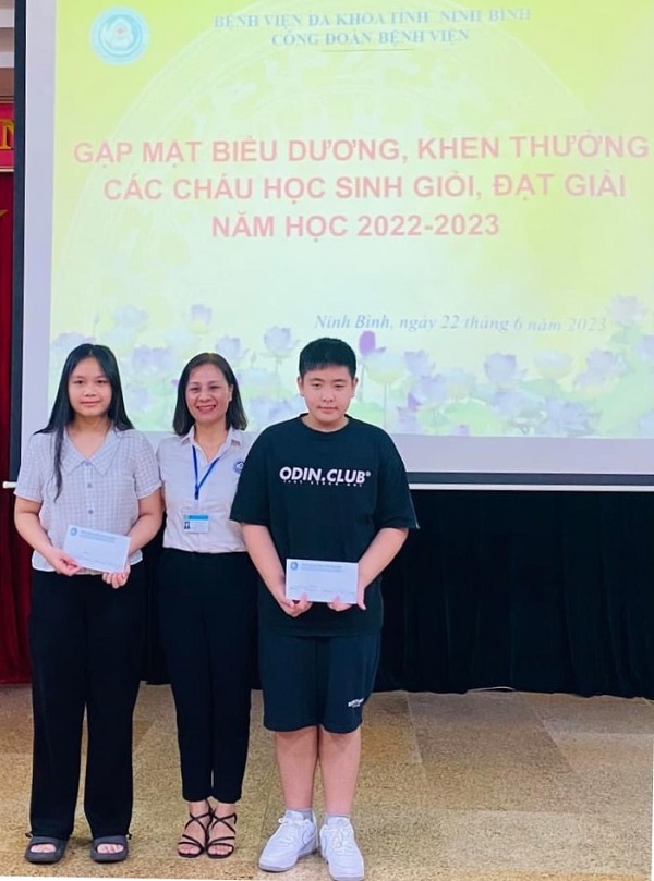 Sáng ngày 22/6/2023, Công đoàn Bệnh viện Đa khoa tỉnh Ninh Bình tổ chức gặp mặt biểu dương, khen thưởng các cháu học sinh giỏi đạt thành tích cao các cấp năm học 2022 - 2023.