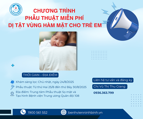 Với mong muốn mang đến cơ hội điều trị miễn phí, cải thiện chức năng và thẩm mỹ cho trẻ em không may mắc dị tật bẩm sinh, Sở Y tế tỉnh Ninh Bình phối hợp với Quỹ Bảo trợ trẻ em Việt Nam và Bệnh viện Trung ương Quân đội 108 triển khai chương trình Phẫu thuật miễn phí dị tật vùng hàm mặt và chi thể cho trẻ em năm 2025.