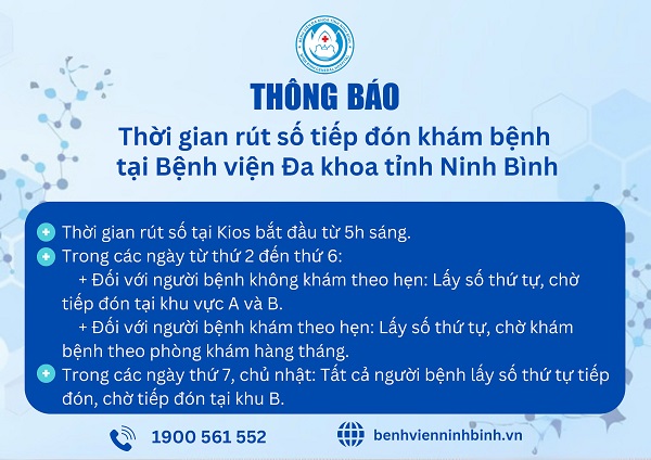 Thông báo thời gian rút số tiếp đón khám bệnh tại Bệnh viện Đa khoa tỉnh Ninh Bình.