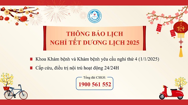 Bệnh viện Đa khoa tỉnh Ninh Bình thông báo lịch nghỉ Tết dương lịch năm 2025 để nhân dân chủ động thời gian đến khám, chữa bệnh.