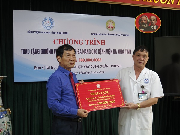 Doanh nghiệp xây dựng Xuân Trường đã trao tặng 08 giường bệnh đa năng 03 tay quay và 08 giường cáng đa năng 03 tay quay trị giá 300 triệu đồng cho Bệnh viện Đa khoa tỉnh Ninh Bình.