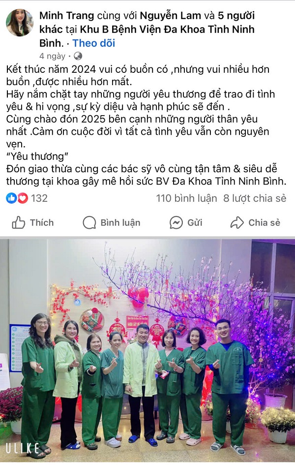 Một mùa xuân mới đã đến, mang theo hơi ấm của tình người nơi bệnh viện và thật nhiều yêu thương. Chúc cho tất cả bệnh nhân mau chóng hồi phục, sớm được đoàn tụ cùng gia đình. Xin gửi lời tri ân sâu sắc đến những người đồng nghiệp – những y bác sĩ tận tụy, không quản ngại khó khăn, luôn hết lòng vì sức khỏe cộng đồng. Cùng nhau, chúng ta tiếp tục hành trình mới, bước vào kỷ nguyên phát triển mạnh mẽ hơn, đưa Bệnh viện Đa khoa tỉnh Ninh Bình ngày càng vững vàng trên con đường chăm sóc và bảo vệ sức khỏe nhân dân.