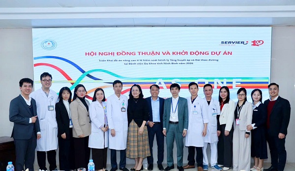 Với mục tiêu đó, Bệnh viện Đa khoa tỉnh Ninh Bình đã chính thức triển khai Đề án “Nâng cao tỷ lệ kiểm soát bệnh Tăng huyết áp và Đái tháo đường -Control Rate AS ONE” năm 2026, trong khuôn khổ chương trình hợp tác giữa Sở Y tế Ninh Bình và Công ty TNHH Servier Việt Nam.