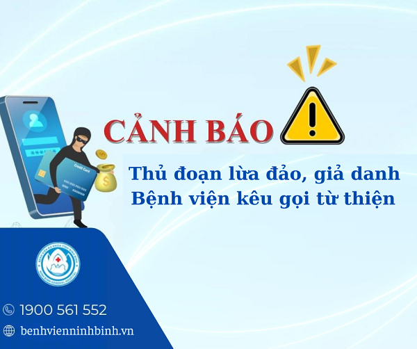 Thời gian gần đây, xuất hiện nhiều đối tượng mạo danh Bệnh viện Đa khoa tỉnh Ninh Bình hoặc Phòng Công tác xã hội trên các nền tảng mạng xã hội để kêu gọi từ thiện cho các hoàn cảnh không có thật, nhằm chiếm đoạt tài sản của người dân và làm ảnh hưởng nghiêm trọng đến uy tín của bệnh viện.