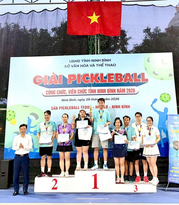Tại Giải Pickleball công chức, viên chức tỉnh Ninh Bình năm 2026 - sân chơi quy tụ hơn 300 vận động viên đến từ 25 cơ quan, đơn vị trong toàn tỉnh - các vận động viên của Bệnh viện Đa khoa tỉnh Ninh Bình đã để lại dấu ấn nổi bật khi xuất sắc giành chức vô địch nội dung đôi nam nữ, thi đấu trong màu áo của đội Sở Y tế.