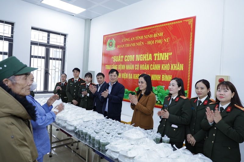 Với mục đích chung tay chia sẻ với những bệnh nhân có hoàn cảnh khó khăn đang điều trị tại Bệnh viện Đa khoa tỉnh Ninh Bình. Ngày 18/1/2025, Đại tá Đinh Việt Dũng, Ủy viên Ban Thường vụ Tỉnh ủy - Bí thư Đảng ủy, Giám đốc Công an tỉnh đã đến tham gia chương trình “Suất cơm nghĩa tình” tại bệnh viện. Đây là chương trình do Công an tỉnh tổ chức định kỳ.