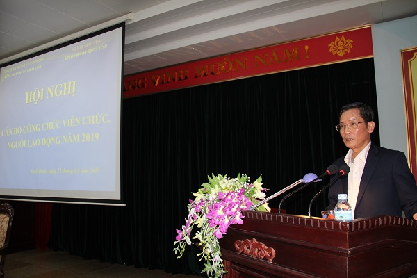 Chiều ngày 25/1/2019, Bệnh viện Đa khoa tỉnh Ninh Bình tổ chức Hội nghị đại biểu cán bộ công chức viên chức, người lao động và tổng kết công tác bệnh viện năm 2018. Dự hội nghị có TS.Vũ Mạnh Dương - Giám đốc Sở Y tế, đồng chí Phạm Thị Thúy Hà - Phó Chủ tịch Công đoàn ngành Y tế; BS.CKII. Phạm Văn Hiệp - Bí thư Đảng bộ - Giám đốc bệnh viện, Th.S Chu Thị Giang - Phó Giám đốc - Chủ tịch Công đoàn bệnh viện; các đồng chí trong ban lãnh đạo bệnh viện, đại diện Ban Chấp hành Công đoàn, đại diện Đoàn thanh niên, đại diện Hội Cựu chiến binh; cùng hơn 200 cán bộ công chức viên chức, người lao động tiêu biểu các khoa, phòng trong toàn viện.