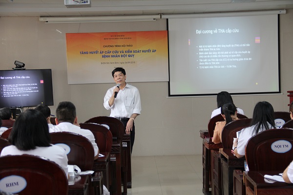 Theo thống kê của Hội Tim mạch Việt Nam, hơn 80% người dân chưa được kiểm soát huyết áp; và mối liên hệ giữa tăng huyết áp, đột quỵ là rất chặt chẽ. Huyết áp cao dẫn đến xơ vữa động mạch, cùng với tăng áp lực máu có thể dẫn đến tắc nghẽn mạch máu. Huyết áp cao cũng khiến các mạch máu trong não suy yếu, căng lên và dễ bị vỡ, dẫn đến nguy cơ đột quỵ tăng từ 4 đến 6 lần. Nhằm trang bị, cập nhật kiến thức cho các bác sỹ; được sự nhất trí của lãnh đạo bệnh viện, ngày 26/9/2018 phòng Chỉ đạo tuyến - Bệnh viện Đa khoa tỉnh Ninh Bình tổ chức hội thảo khoa học chuyên đề: Tăng huyết áp cấp cứu và kiểm soát huyết áp bệnh nhân đột quỵ cho toàn thể bác sỹ công tác tại viện.