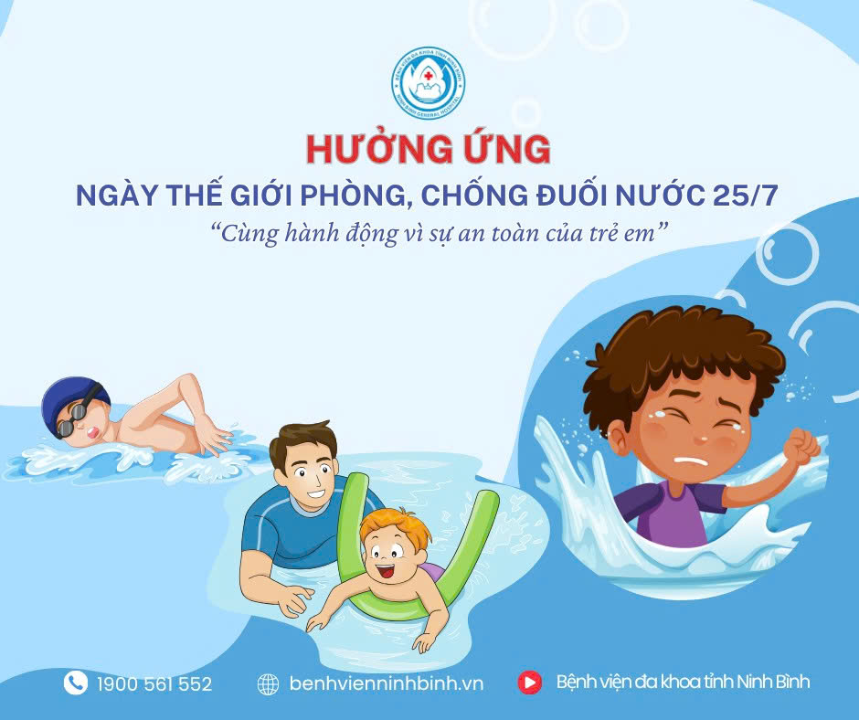 Hưởng ứng sự kiện ý nghĩa này, Bệnh viện Đa khoa tỉnh Ninh Bình tích cực triển khai truyền thông, đồng hành cùng cộng đồng trong công tác phòng, chống đuối nước, đặc biệt ở trẻ em.