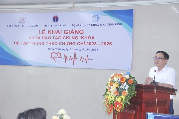 Phát biểu tại lễ khai giảng, GS.TS.Tạ Thành Văn - Bí thư Đảng ủy, Chủ tịch Hội đồng trường cho biết giữa Đại học Y Hà Nội và ngành Y tế Ninh Bình đã có nhiều gắn kết trong những năm qua, cũng là đơn vị có kinh nghiệm trong đào tạo tại địa phương. Các học viên được đào tạo tập trung tại Ninh Bình giúp có nhiều thuận lợi, với trình độ chuyên môn cao, được tiếp cận với các mặt bệnh phong phú; được sự quan tâm của Lãnh đạo Sở Y tế và cơ sở thực hành Bệnh viện Đa khoa tỉnh Ninh Bình, là điều kiện đảm bảo cho sự thành công của khóa học.