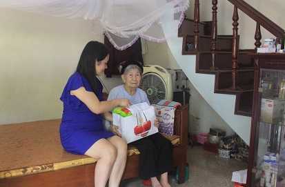 Đ/c Chu Thị Giang - Chủ tịch Công đoàn - Phó Giám đốc Bệnh viện tặng quà Mẹ Lâm Thị Hồng