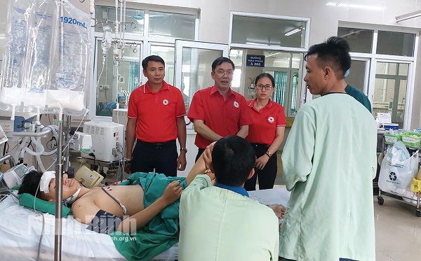 Ông Bùi Trọng Kỳ - Chủ tịch Hôi Chữ thập đỏ tỉnh Ninh Bình thăm hỏi người bệnh sau phẫu thuật