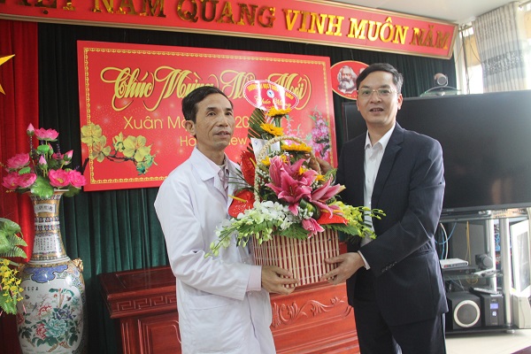 Chiều cùng ngày, TS.Vũ Văn Lại - Hiệu trưởng trường Cao đẳng Y tế Ninh Bình làm trưởng đoàn, cùng các thầy cô giáo đến chúc mừng cán bộ, nhân viên y tế nhân ngày Thầy thuốc Việt Nam.