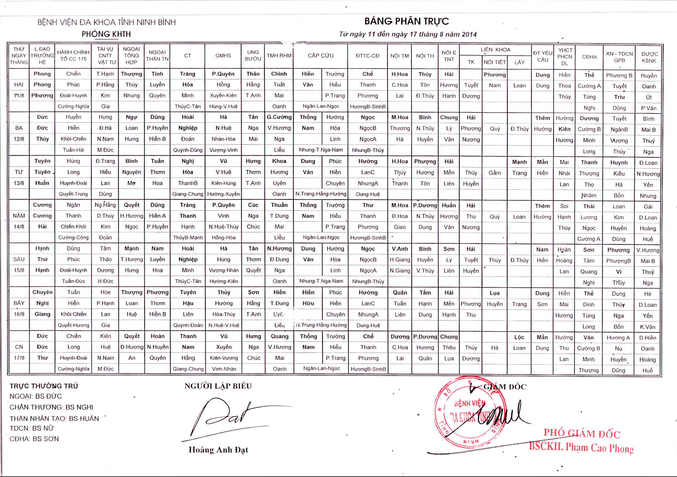 Bảng phân trực các khoa Lâm sàng (từ ngày 2 đến ngày 8 tháng 3 năm 2026).