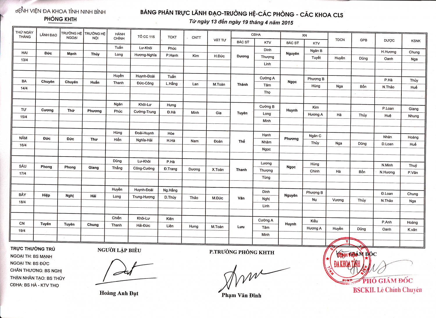 Từ ngày 13 đến ngày 19 tháng 4 năm 2015 (Lãnh đạo - Trưởng hệ - các phòng - các khoa Cận lâm sàng)