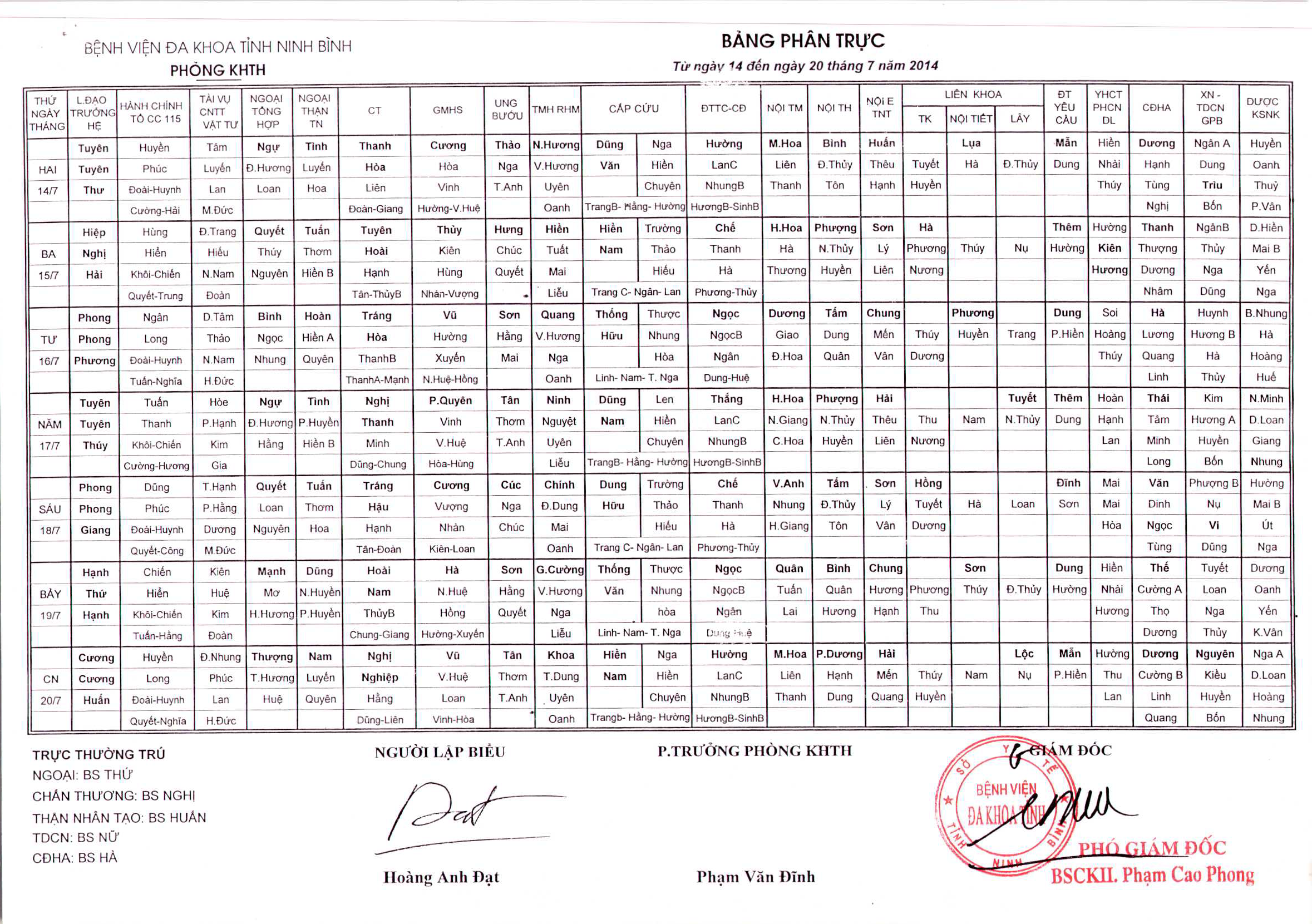 Bảng phân trực các khoa Lâm sàng (từ ngày 23 tháng 2 đến ngày 1 tháng 3 năm 2026)