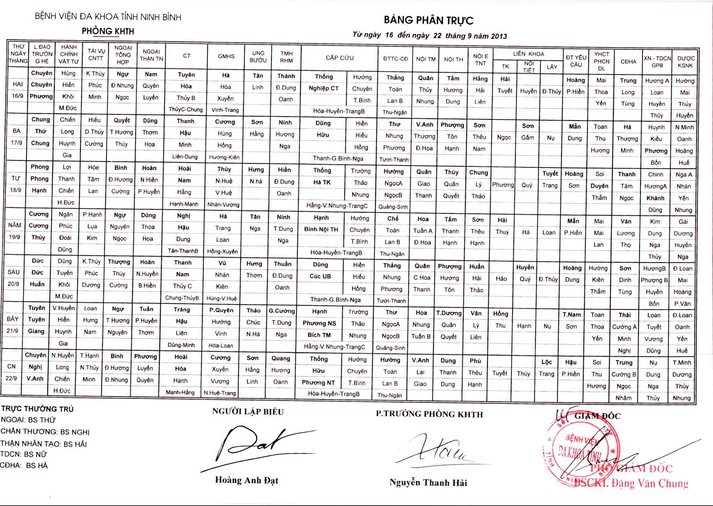 Bảng phân trực các khoa Lâm sàng (từ ngày 2 đến ngày 8 tháng 3 năm 2026).