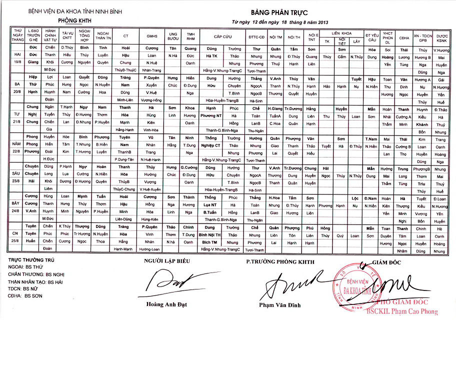 Bảng phân trực các khoa Lâm sàng (từ ngày 2 đến ngày 8 tháng 3 năm 2026).