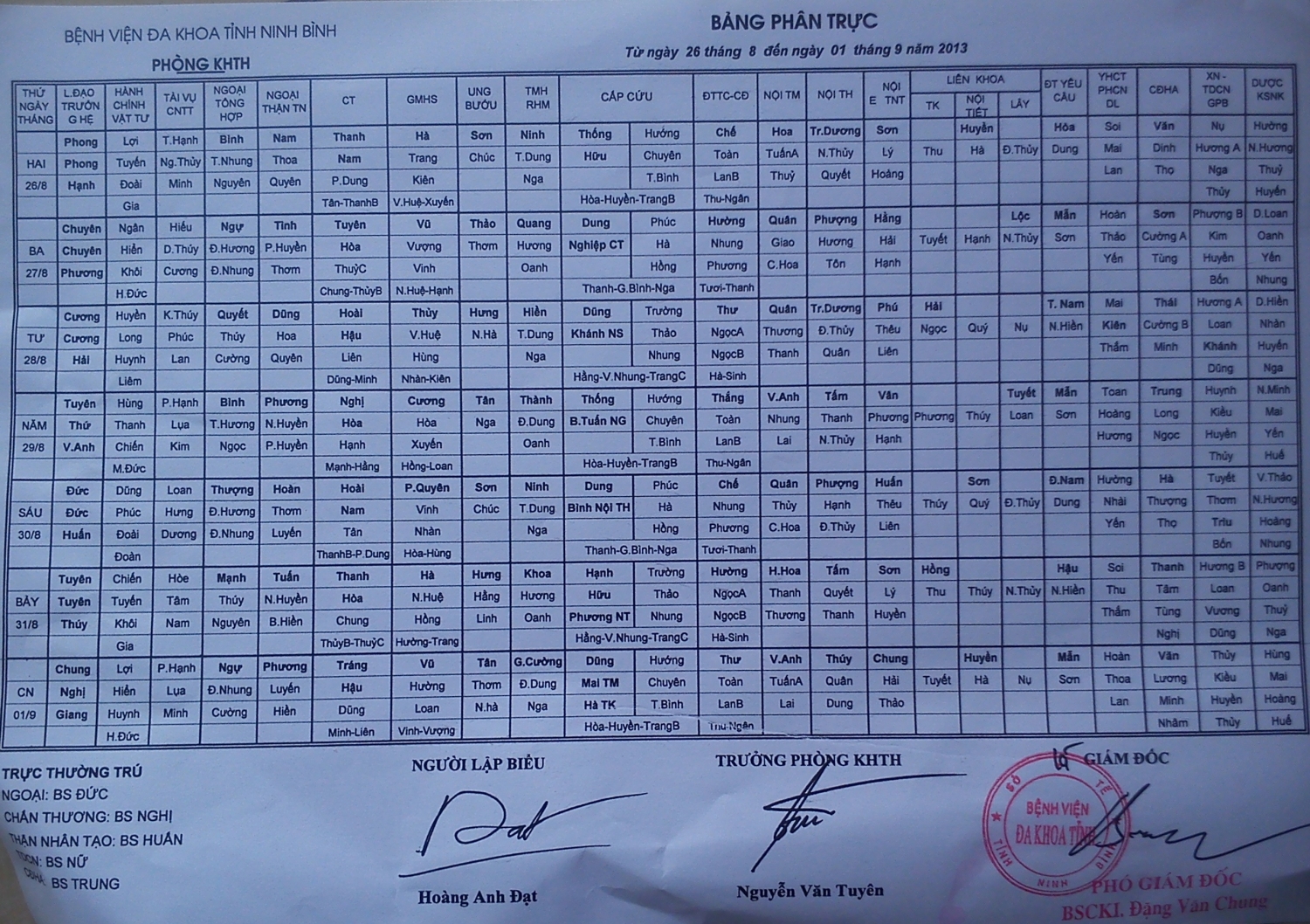 Bảng phân trực các khoa Lâm sàng (từ ngày 2 đến ngày 8 tháng 3 năm 2026).