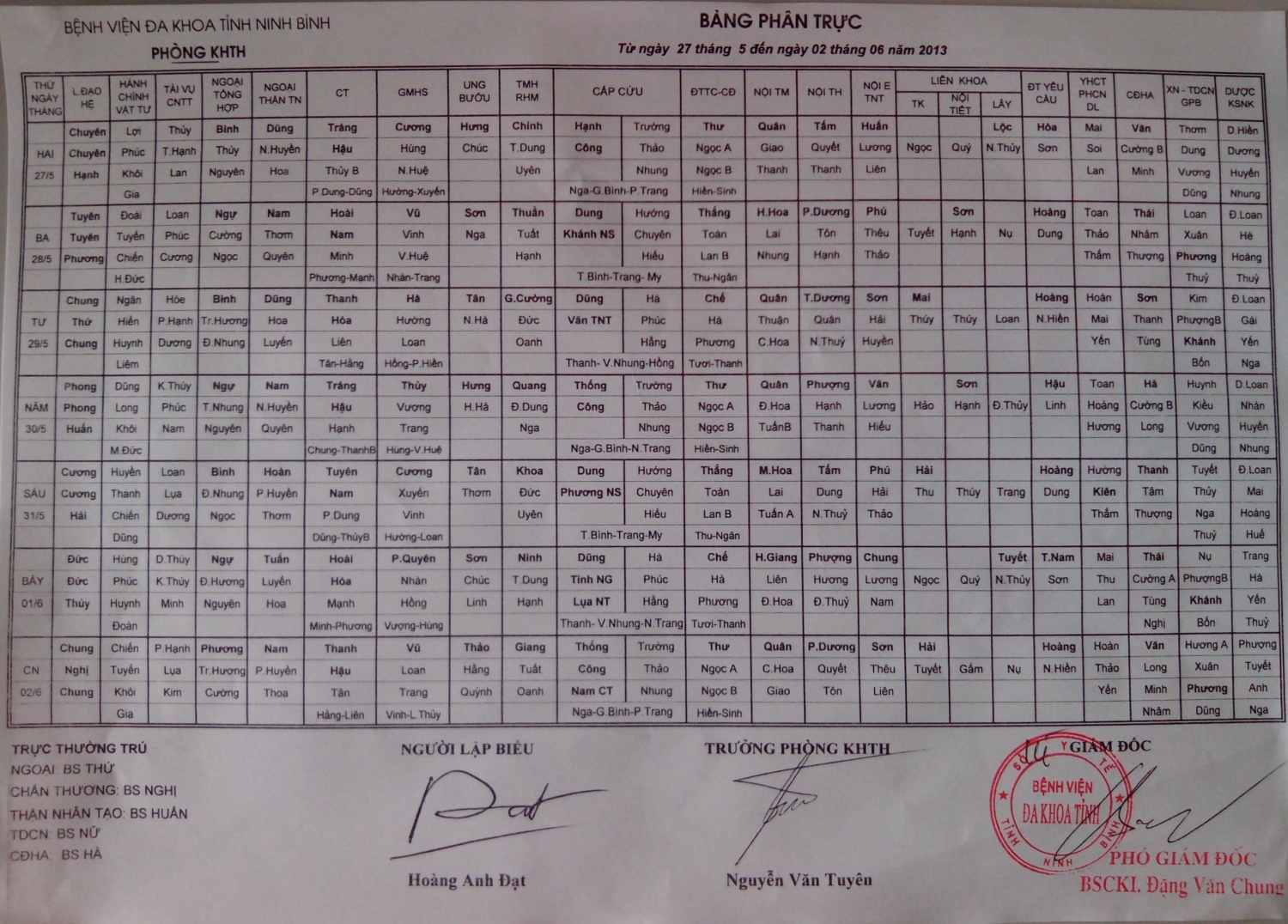 Bảng phân trực các khoa Lâm sàng (từ ngày 2 đến ngày 8 tháng 3 năm 2026).