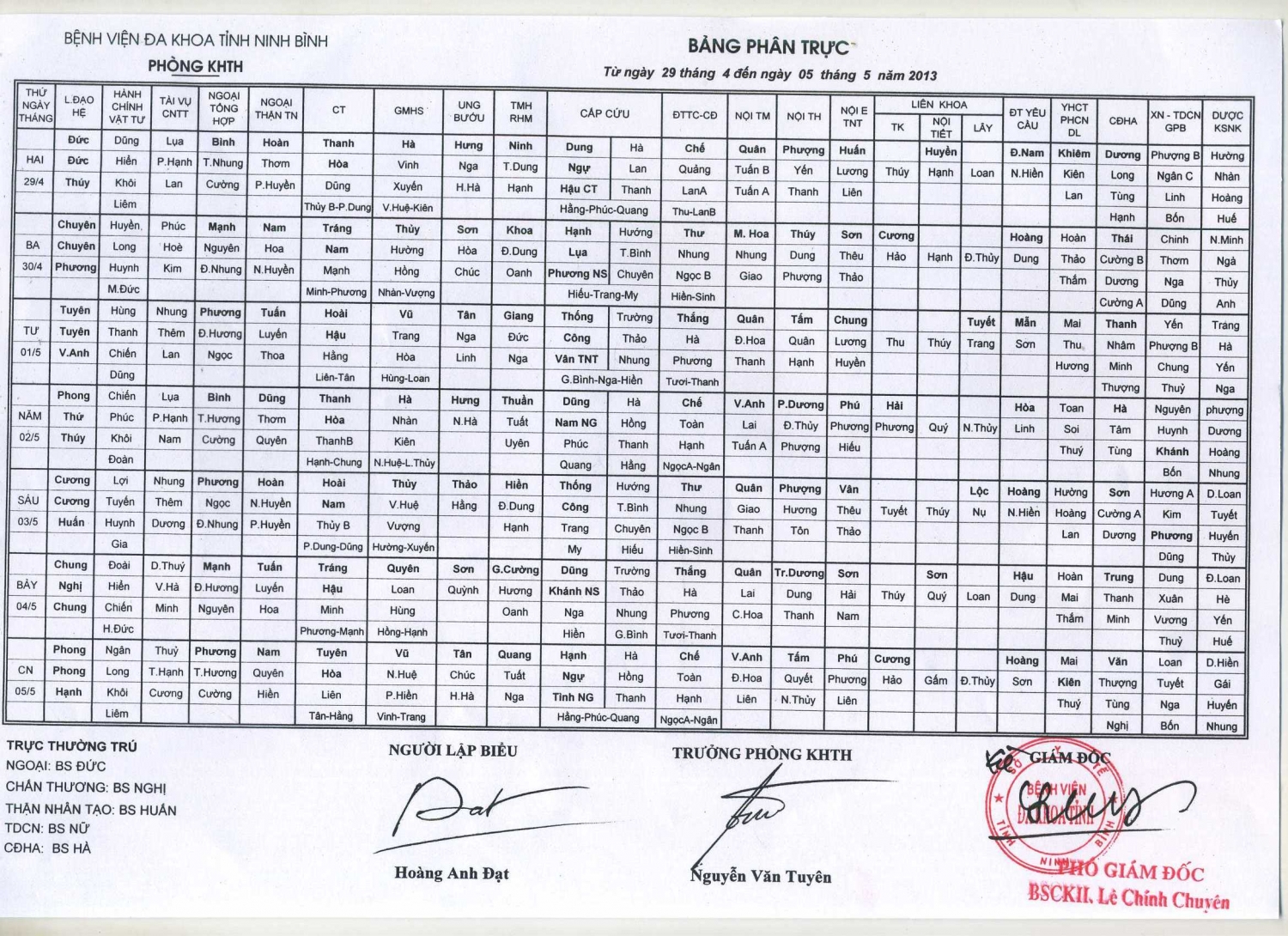 Bảng phân trực các khoa Lâm sàng (từ ngày 23 tháng 2 đến ngày 1 tháng 3 năm 2026)