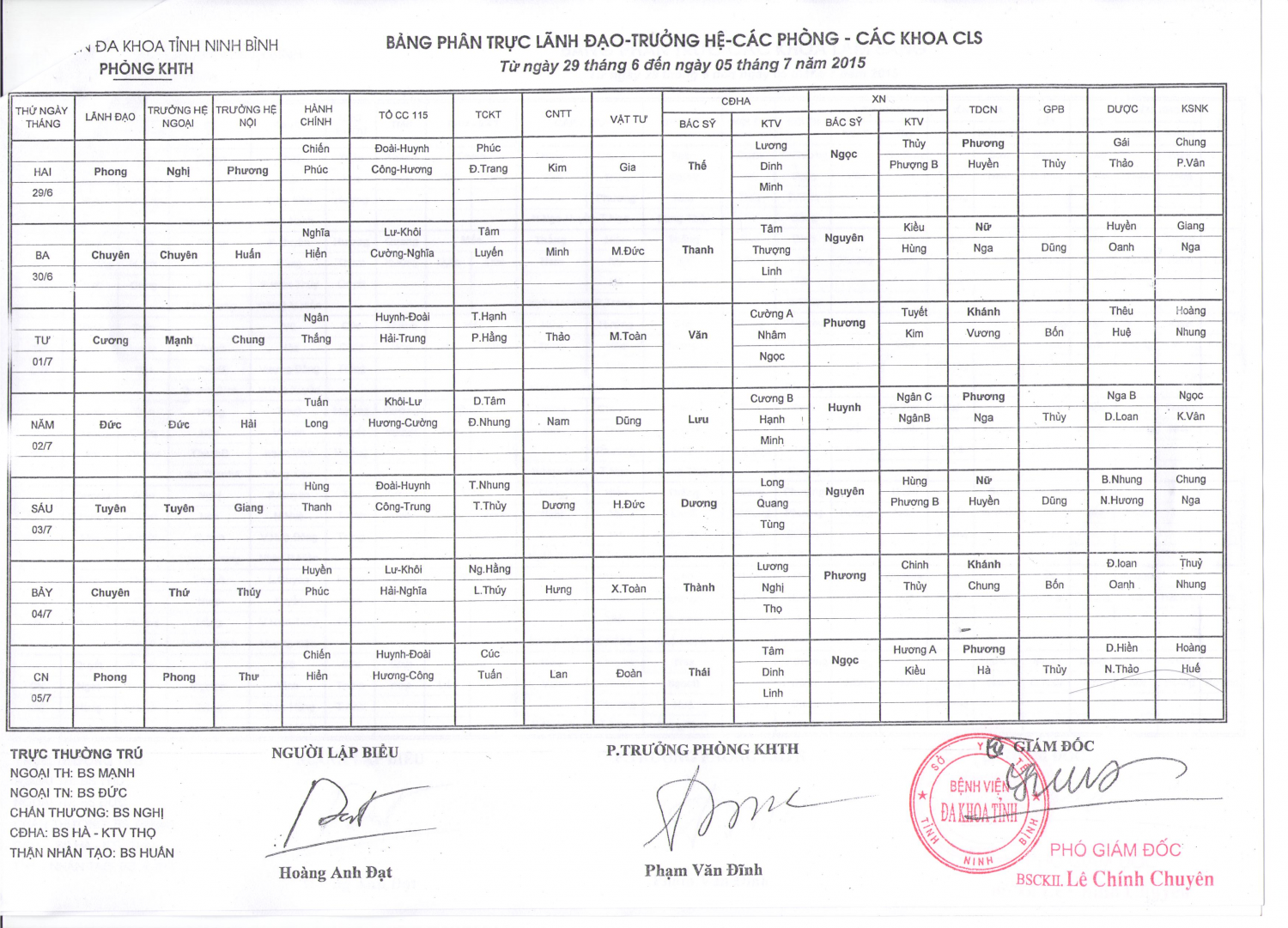 Từ ngày 29 tháng 6 đến ngày 5 tháng 7 năm 2015 (lãnh đạo-trưởng hệ-các phòng-các khoa LS)