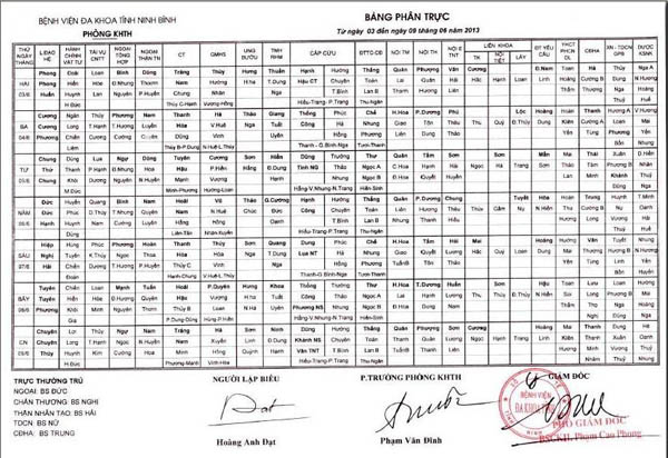 Bảng phân trực các khoa Lâm sàng (từ ngày 2 đến ngày 8 tháng 3 năm 2026).