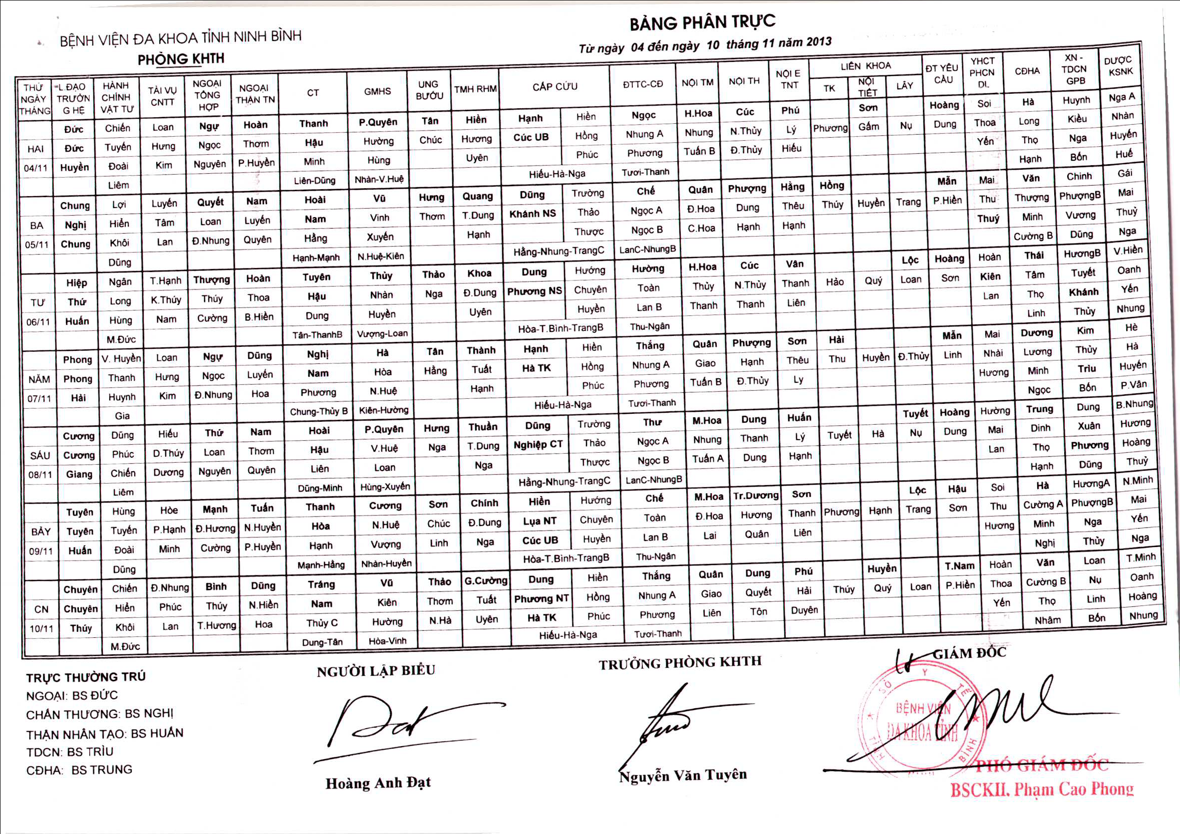 Bảng phân trực các khoa Lâm sàng (từ ngày 2 đến ngày 8 tháng 3 năm 2026).