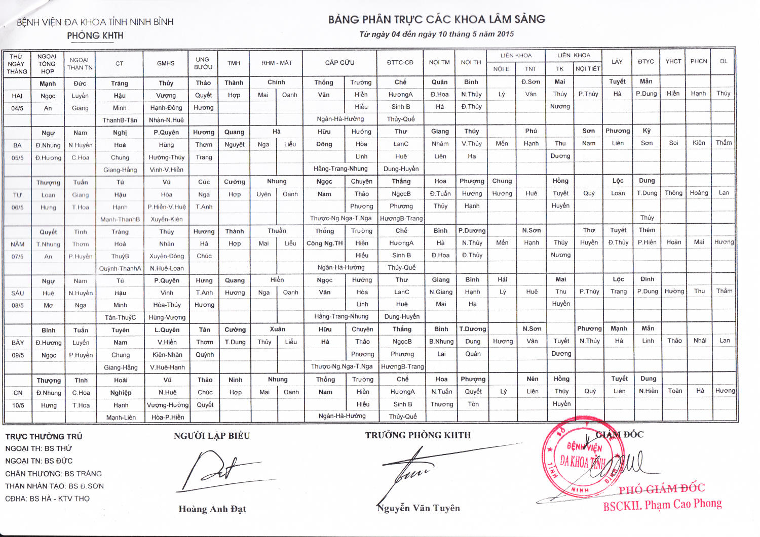 Từ ngày 4 đến ngày 10 tháng 5 năm 2015 (các khoa Lâm sàng)