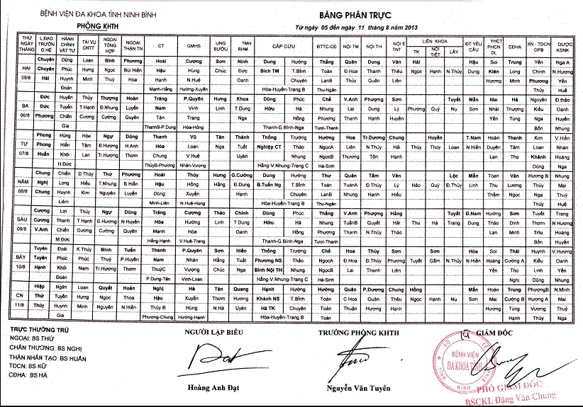 Bảng phân trực các khoa Lâm sàng (từ ngày 2 đến ngày 8 tháng 3 năm 2026).