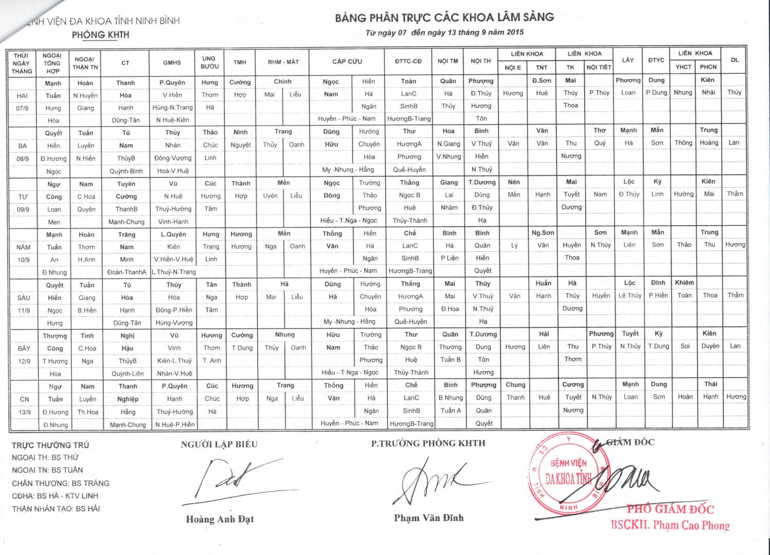 Từ ngày 7 đến ngày 13 tháng 9 năm 2015 (các khoa Lâm sàng)