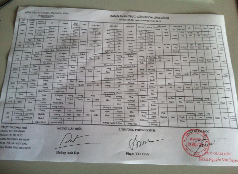 Bảng phân trực các khoa Lâm sàng (từ ngày 2 đến ngày 8 tháng 3 năm 2026).