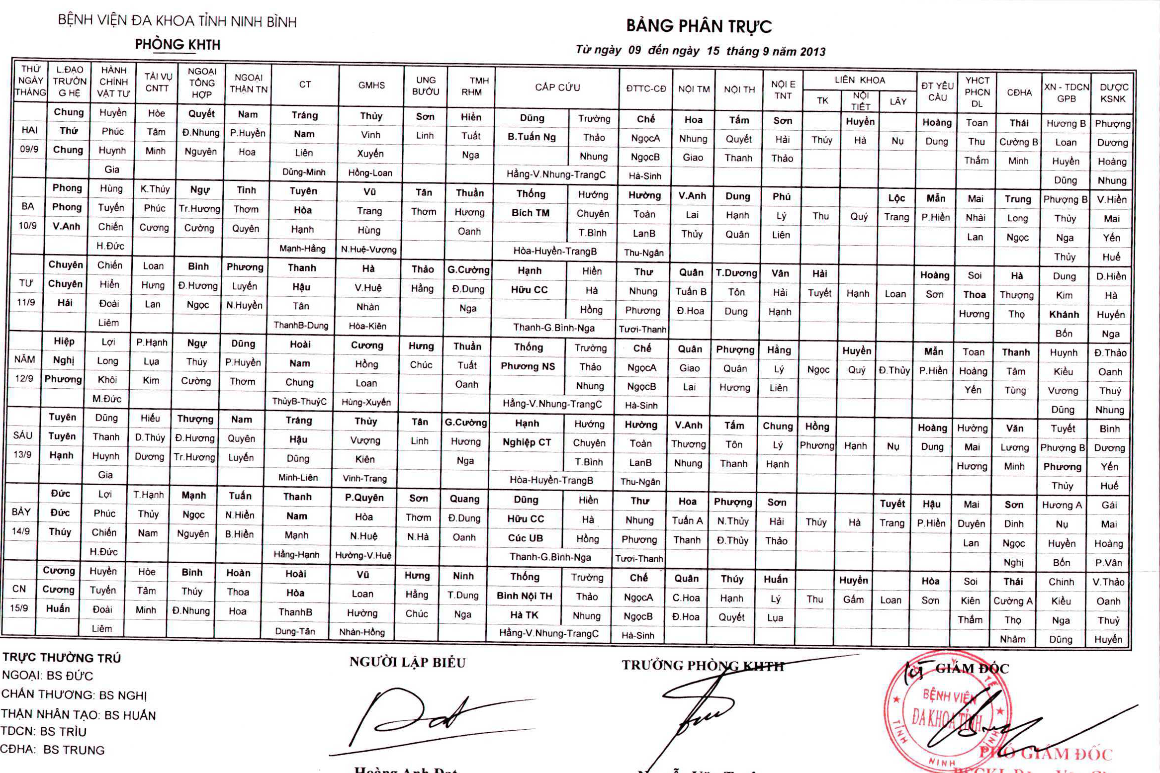 Bảng phân trực các khoa Lâm sàng (từ ngày 23 tháng 2 đến ngày 1 tháng 3 năm 2026)